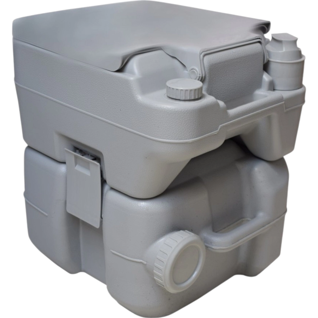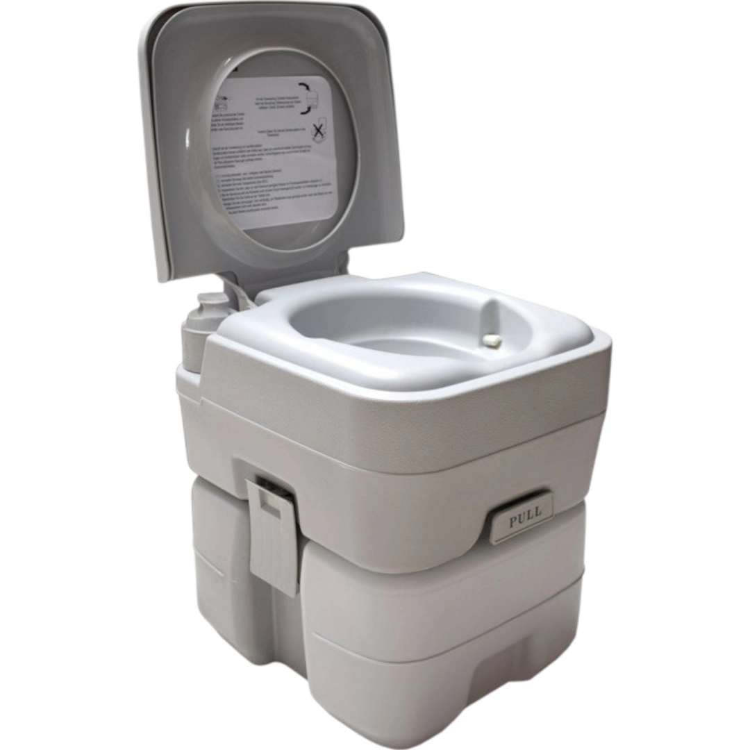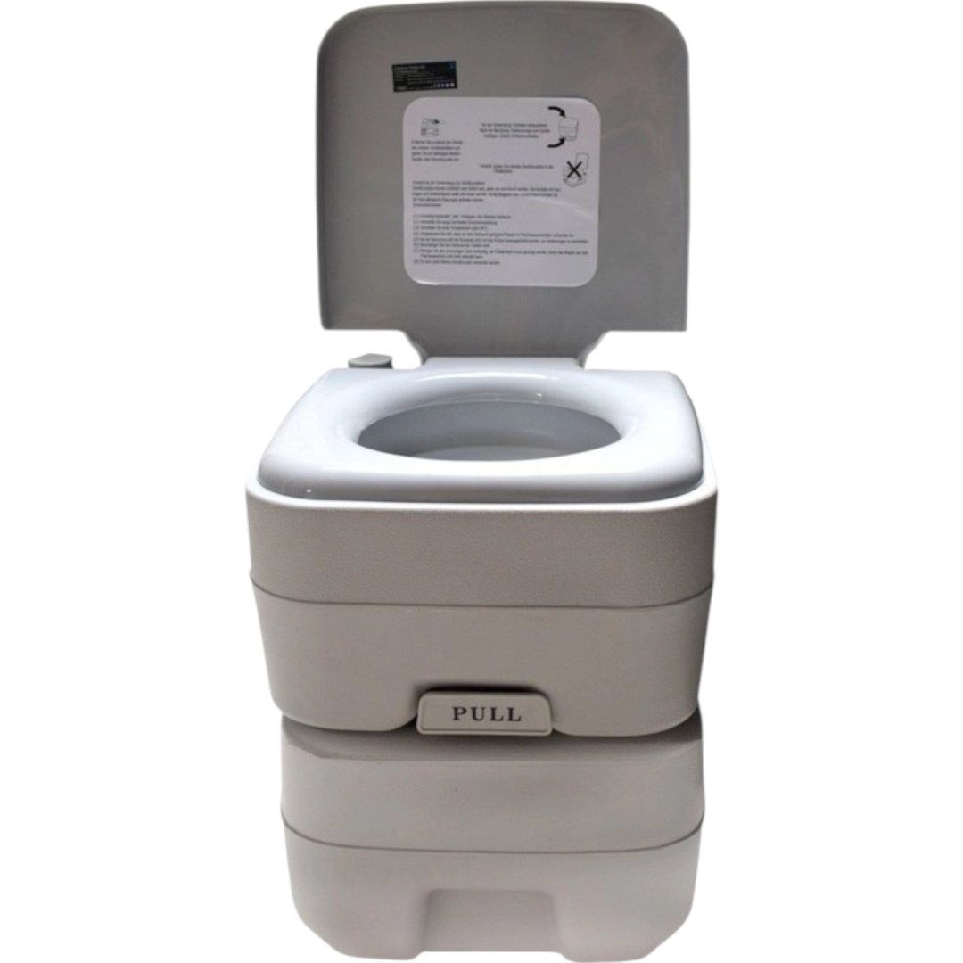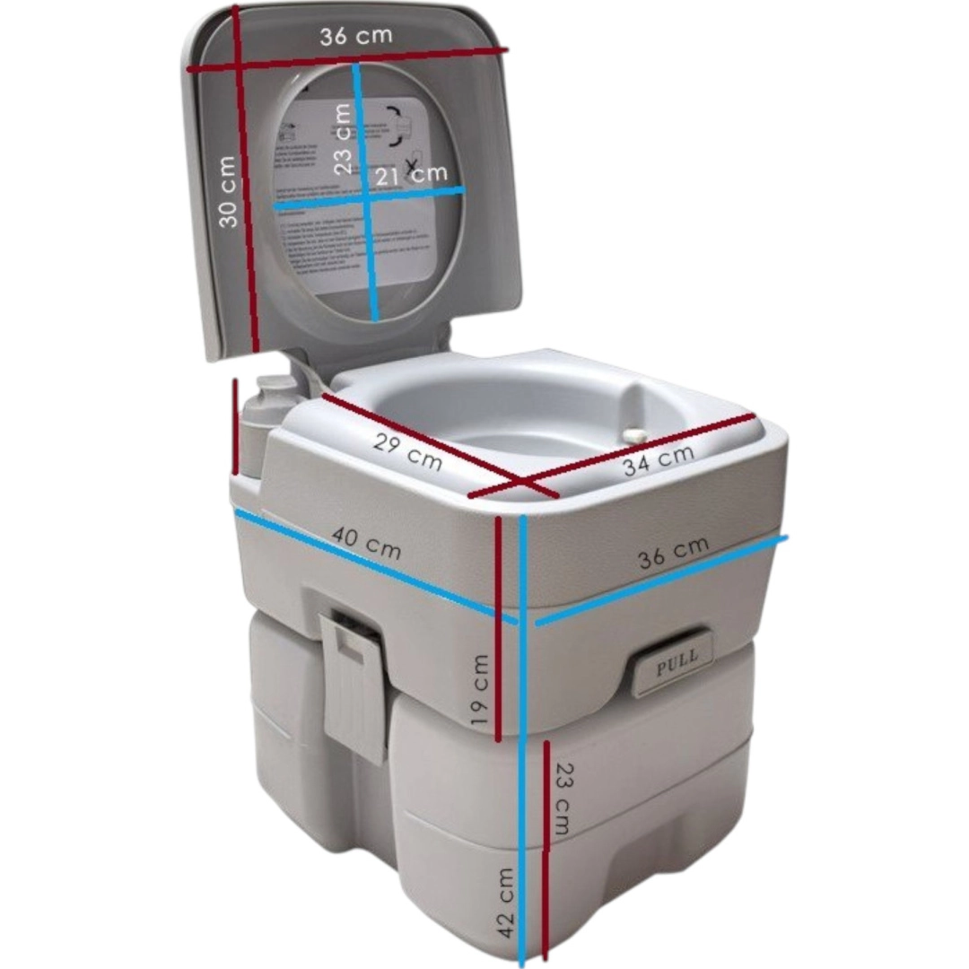 Disfruta de la libertad de viajar sin compromisos. El inodoro portátil con 10 l de agua limpia y depósito de residuos de 20 l ofrece la comodidad de un inodoro doméstico incluso donde no hay infraestructura. La solución estable de dos piezas se une mediante hebillas laterales, es hermética y fácil de transportar. Ideal para acampada, caravana, barco, jardín, obra o casa de campo.