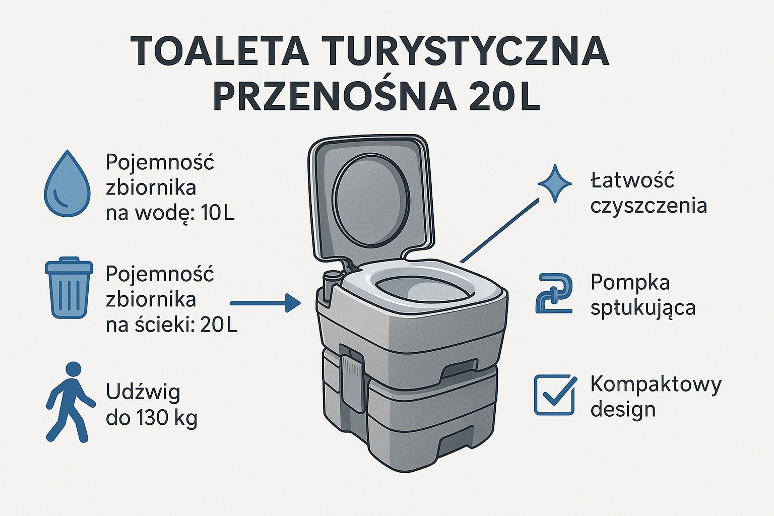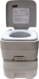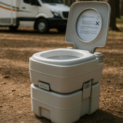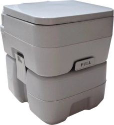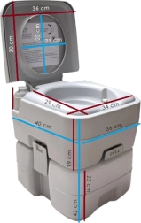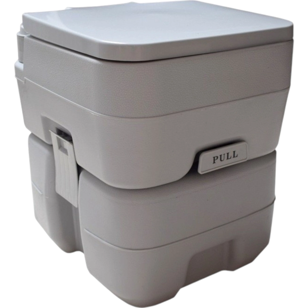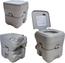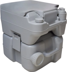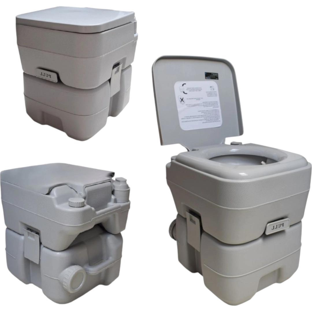 Disfruta de la libertad de viajar sin compromisos. El inodoro portátil con 10 l de agua limpia y depósito de residuos de 20 l ofrece la comodidad de un inodoro doméstico incluso donde no hay infraestructura. La solución estable de dos piezas se une mediante hebillas laterales, es hermética y fácil de transportar. Ideal para acampada, caravana, barco, jardín, obra o casa de campo.