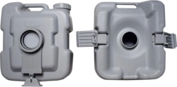 La parte superior con depósito de agua y asiento se une firmemente al depósito inferior de residuos mediante cierres laterales. Es hermética, segura para el transporte y se separa fácilmente para su limpieza.