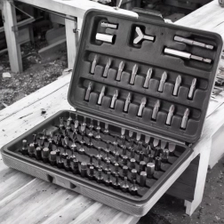 Cada punta tiene su lugar designado en un maletín de plástico rígido. Encontrarás fácilmente el tamaño correcto y podrás transportar todo con seguridad.