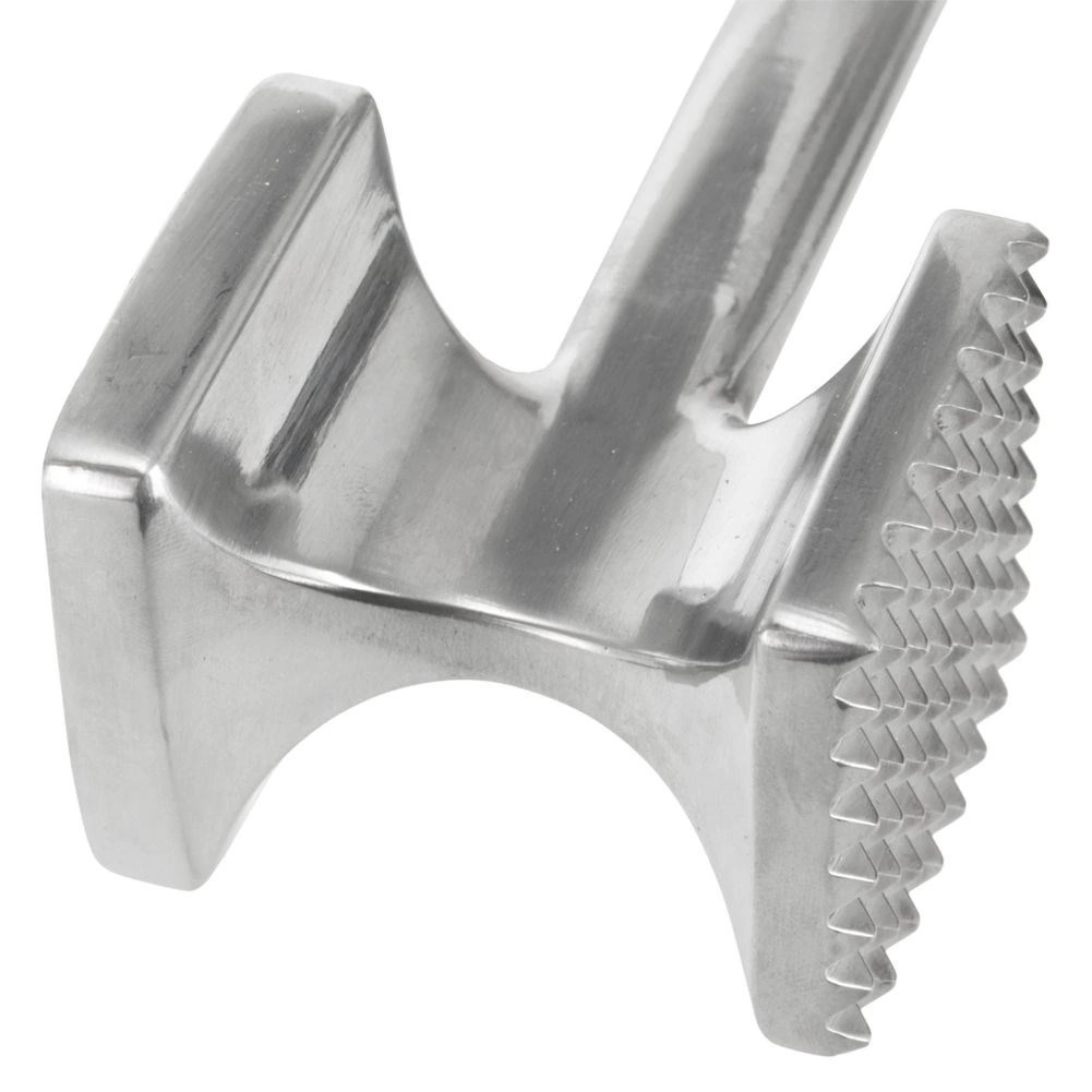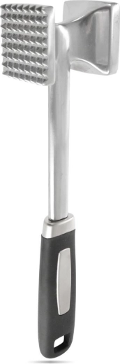El robusto mazo ablandador de carne de doble cara, fabricado en aluminio de alta calidad, destaca por su uso versátil en cualquier cocina. El lado liso aplana rápidamente los filetes hasta un grosor uniforme para una fritura u horneado homogéneos, mientras que el lado con puntas piramidales ablanda y rompe las fibras para una mejor absorción de marinados y especias.