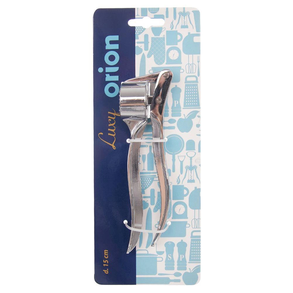 La prensa está fabricada en metal cromado para una larga durabilidad y un mantenimiento sencillo: después de usarla, puede colocarla en el lavavajillas. Encaja a la perfección en una cocina moderna y complementa otros utensilios de la serie LUXY de la marca ORION.