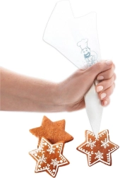 Práctico set de 20 mangas pasteleras desechables de 34,5 cm para decorar tartas, pasteles, cupcakes e incluso aperitivos salados. Las mangas de lámina resistente y antideslizante garantizan un control preciso al aplicar cremas, glaseados y rellenos. Ajusta fácilmente el tamaño de la abertura recortando la punta. Adecuadas para repostería doméstica y profesional.