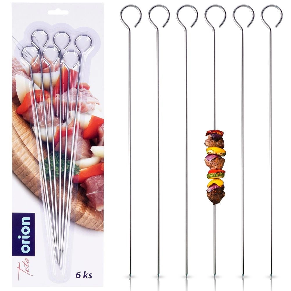Descubra brochetas fiables para cada sesión de parrilla. Gracias al acero inoxidable, son resistentes al calor y a la corrosión y, con el uso adecuado, duran años. La superficie lisa facilita ensartar los ingredientes y la limpieza, mientras que el ojal redondeado en el extremo asegura un agarre firme y evita que los alimentos se deslicen.