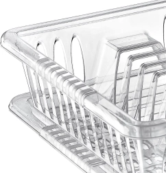 Escurreplatos práctico y versátil que encaja en cocinas modernas y clásicas. Gracias a las secciones dedicadas, organizarás fácilmente platos, tazas, cuencos y cubiertos. El acabado transparente aporta ligereza y permite una rápida circulación del aire para un secado más eficiente.