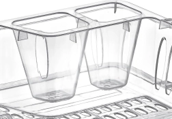 Ranuras especiales para platos, espacio para tazas y dos compartimentos separados para cubiertos mantienen todo ordenado y estable durante el secado.