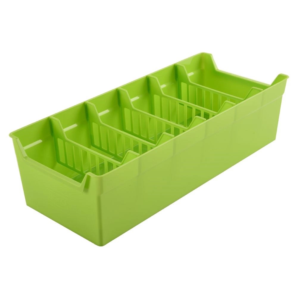 Práctico organizador de cocina para especias de 30 × 13 × 8 cm que te ayuda a mantener ordenados los sobres de especias. Gracias a sus divisores extraíbles podrás clasificar las especias según tus necesidades, encontrar rápidamente el sobre adecuado y evitar derrames. El plástico ligero y resistente en color verde encaja en cualquier cocina.