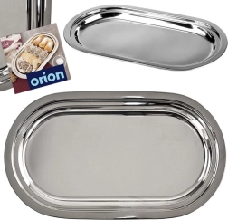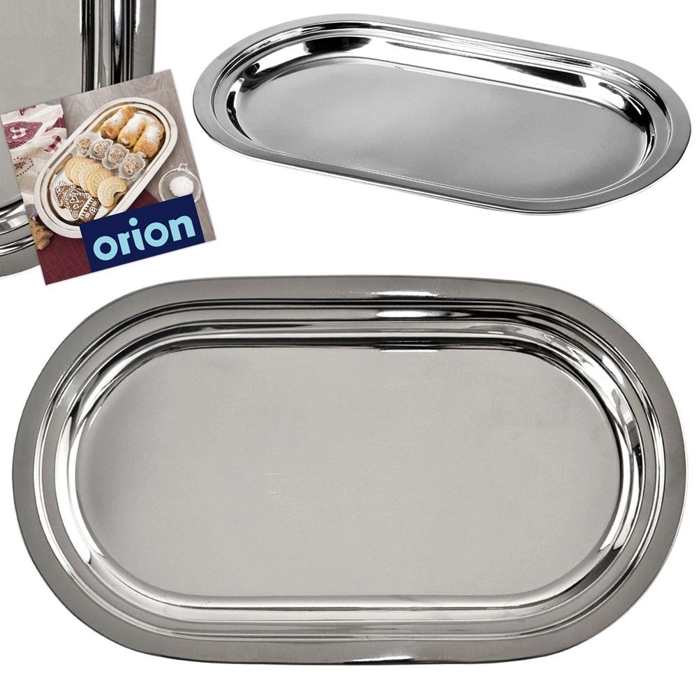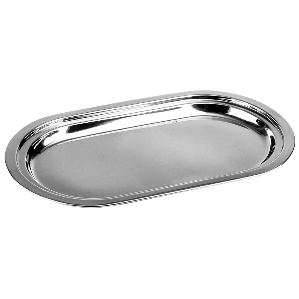 La estilosa bandeja ovalada está fabricada en acero inoxidable resistente con alto brillo, fácil de limpiar y resistente a las manchas y a la corrosión. Su práctico borde elevado facilita el transporte y evita que los alimentos se deslicen.