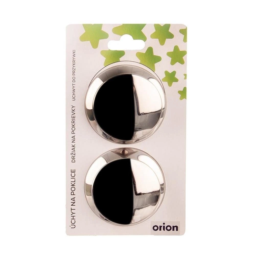Práctico juego de dos botones universales para tapas, fabricados en acero inoxidable de alta calidad en elegante color plateado. Son adecuados para tapas con un diámetro de 14–30 cm, tienen un diámetro de 6,5 cm y, gracias a su forma redonda, ofrecen un agarre cómodo y estable. Fácil montaje, posibilidad de lavado en lavavajillas y compatibilidad con una amplia gama de ollas y sartenes. Producto original de la marca ORION.