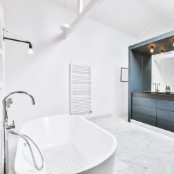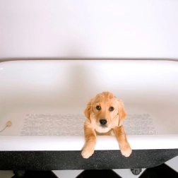 La superficie más suave protege los pies del suelo frío y duro, a la vez que favorece la estabilidad durante la ducha.