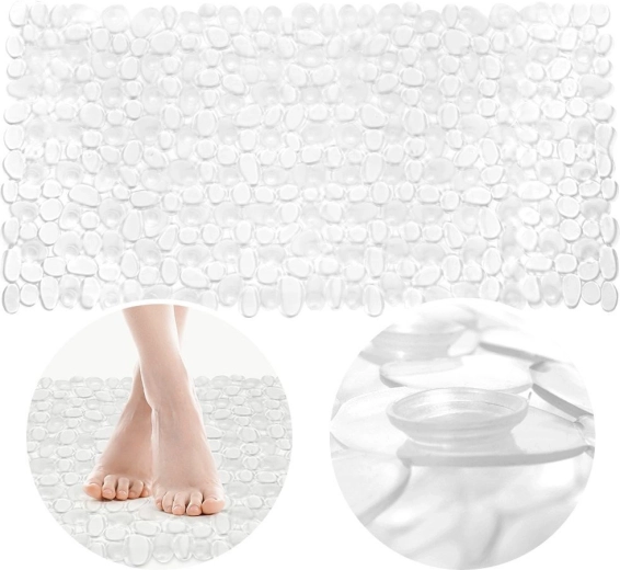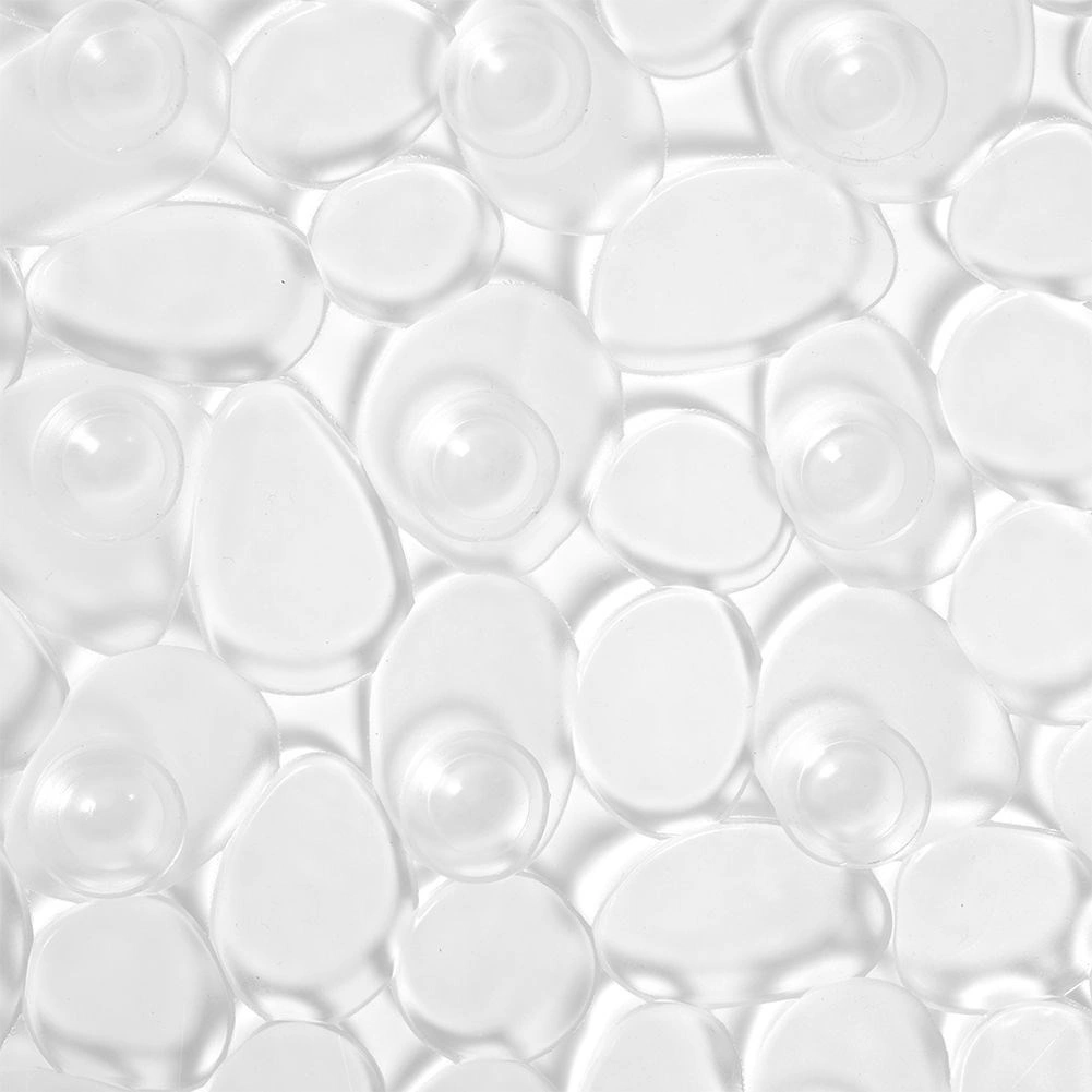 Práctica alfombrilla antideslizante para ducha o bañera que garantiza una pisada estable incluso en superficies mojadas. Gracias a sus numerosas ventosas, se mantiene firmemente en su sitio, mientras que la suave textura tipo cantos rodados aporta confort tanto en la ducha como en el baño. El diseño transparente es discreto y combina elegantemente con cualquier estilo de baño.
