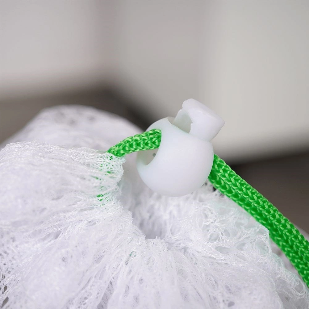 La tanca plástica con cordón asegura un cierre fiable de la bolsa sin riesgo de dañar la ropa ni la lavadora.