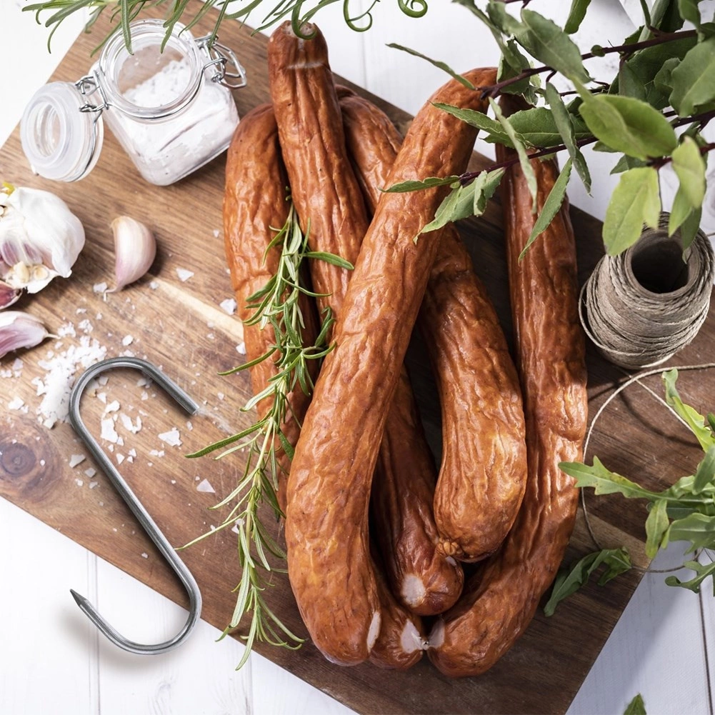 Gracias a su construcción robusta, los ganchos soportan de forma fiable piezas más grandes de carne, embutidos y pescado. El acero inoxidable es higiénico, resistente a la corrosión y apto para lavavajillas. Los ganchos son excelentes no solo para ahumar y secar, sino también para el almacenamiento organizado de productos terminados en la despensa o cocina.