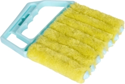 El mango con forma ergonómica se sujeta cómodamente; los siete “dedos” perfilados penetran entre las lamas y en espacios estrechos, por ejemplo en rejillas de ventilación o en algunos tipos de radiadores. El cepillo puede usarse en seco para eliminar rápidamente el polvo o en húmedo para una limpieza más profunda.
