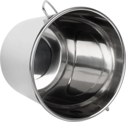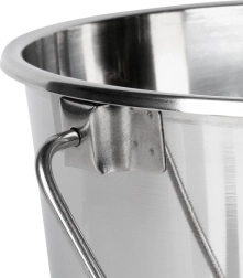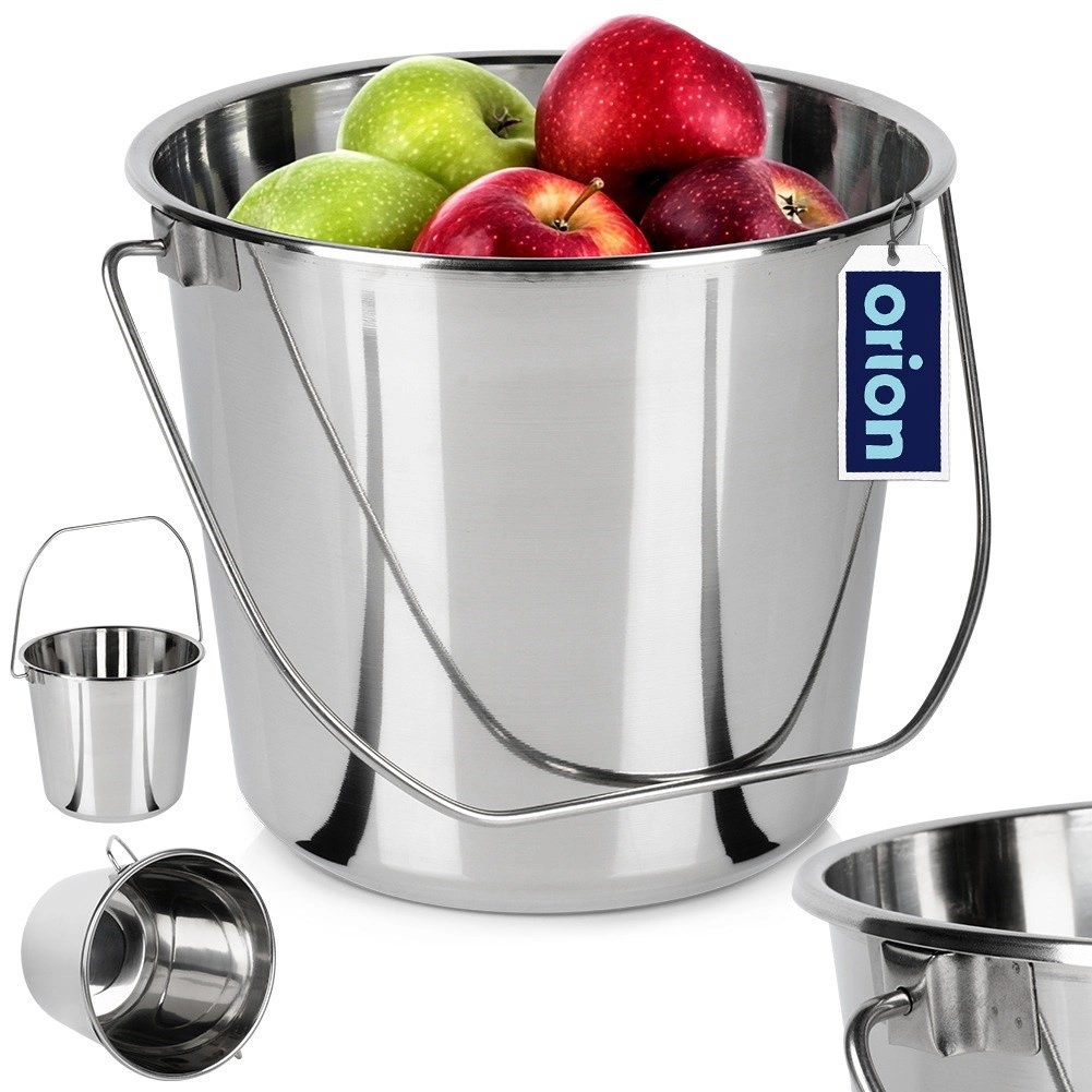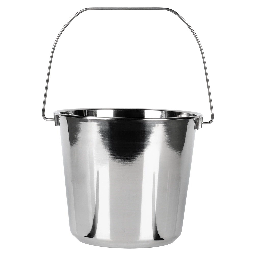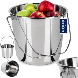 Práctico cubo de acero inoxidable con una capacidad de 8 l, apto para el contacto con alimentos y con larga vida útil. Su superficie lisa y fácil de lavar y el asa de alambre robusta garantizan un uso cómodo en el hogar, la gastronomía y el jardín.