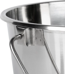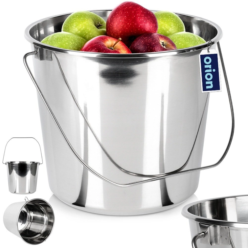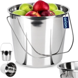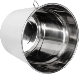 El cubo de acero inoxidable de 12 l es un ayudante práctico para recoger, transportar y almacenar líquidos y alimentos. Está fabricado con acero inoxidable de calidad apto para contacto con alimentos, por lo que es adecuado para la cocina y la gastronomía profesional. Su superficie lisa es fácil de mantener, no absorbe olores y es resistente a la corrosión.