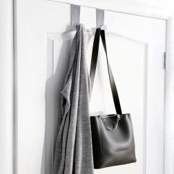 Amplía el espacio de almacenamiento en un instante: solo cuelga los ganchos sobre el borde superior de la puerta o del armario y tendrás inmediatamente un lugar para dejar tus cosas. El acero inoxidable mate en color plateado neutro combina con cualquier interior y, gracias a sus dimensiones compactas, no estorba al cerrar la puerta.