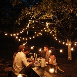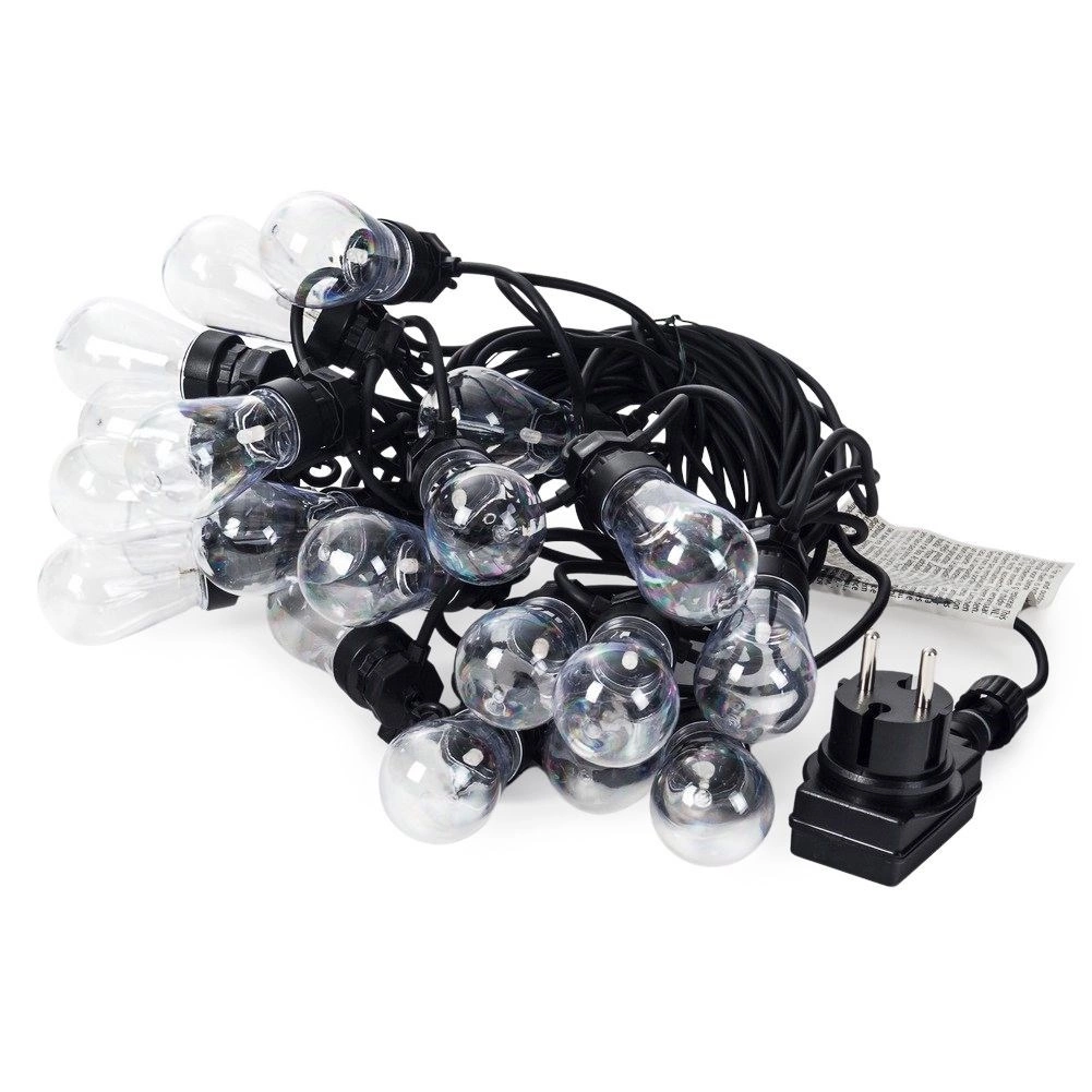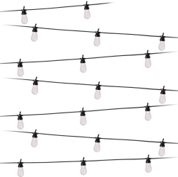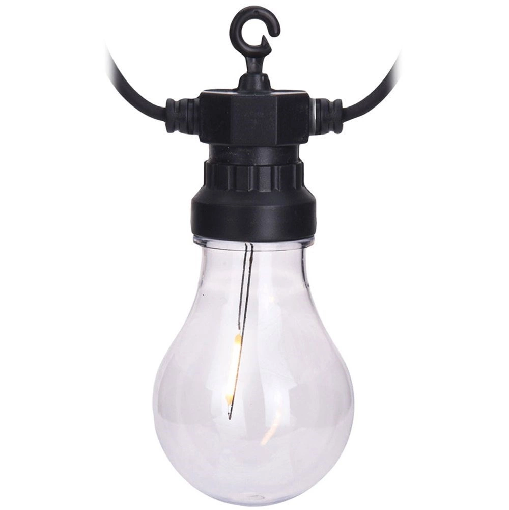 Cada casquillo cuenta con un práctico gancho para una instalación rápida y segura en la pérgola, la valla o las ramas de los árboles. El conjunto, ligero y fácil de mantener, ofrece una distribución uniforme de la luz gracias a la distancia de 50 cm entre bombillas y al cable de alimentación de 3 m.