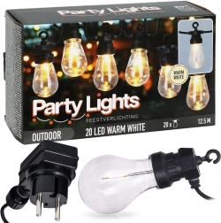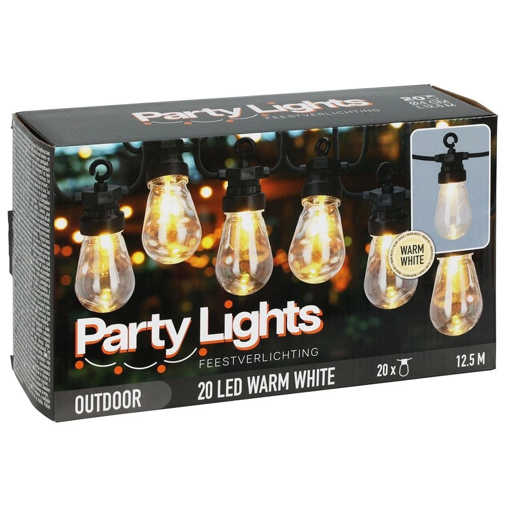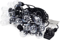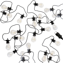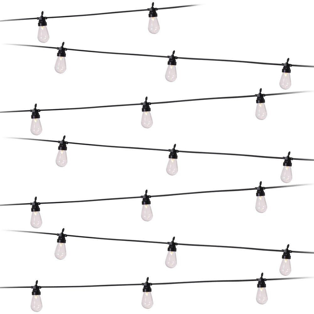 Una guirnalda luminosa con estilo de 12,5 m y 20 bombillas LED transparentes crea un ambiente acogedor en el balcón, la terraza y el jardín. Ofrece luz de color neutro, resistencia IP44 para uso en exteriores y prácticos ganchos para colgar fácilmente. Gracias al cable de alimentación de 3 m y a la distancia de 50 cm entre bombillas, es ideal para iluminar de forma decorativa zonas de estar, fiestas y bodas.