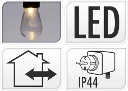 Crea una atmósfera mágica con la guirnalda LED de 12,5 m. Las bombillas transparentes con luz neutra aportan una iluminación agradable y natural sin tonalidades no deseadas. Gracias a la protección IP44, la cadena es apta tanto para exterior como para interior: desde el balcón y la terraza hasta el jardín.