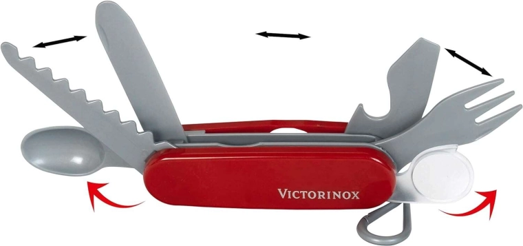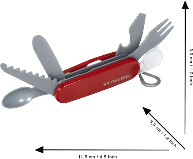 Una réplica fiel del icónico cuchillo de bolsillo en versión infantil que motiva al juego creativo y realista.