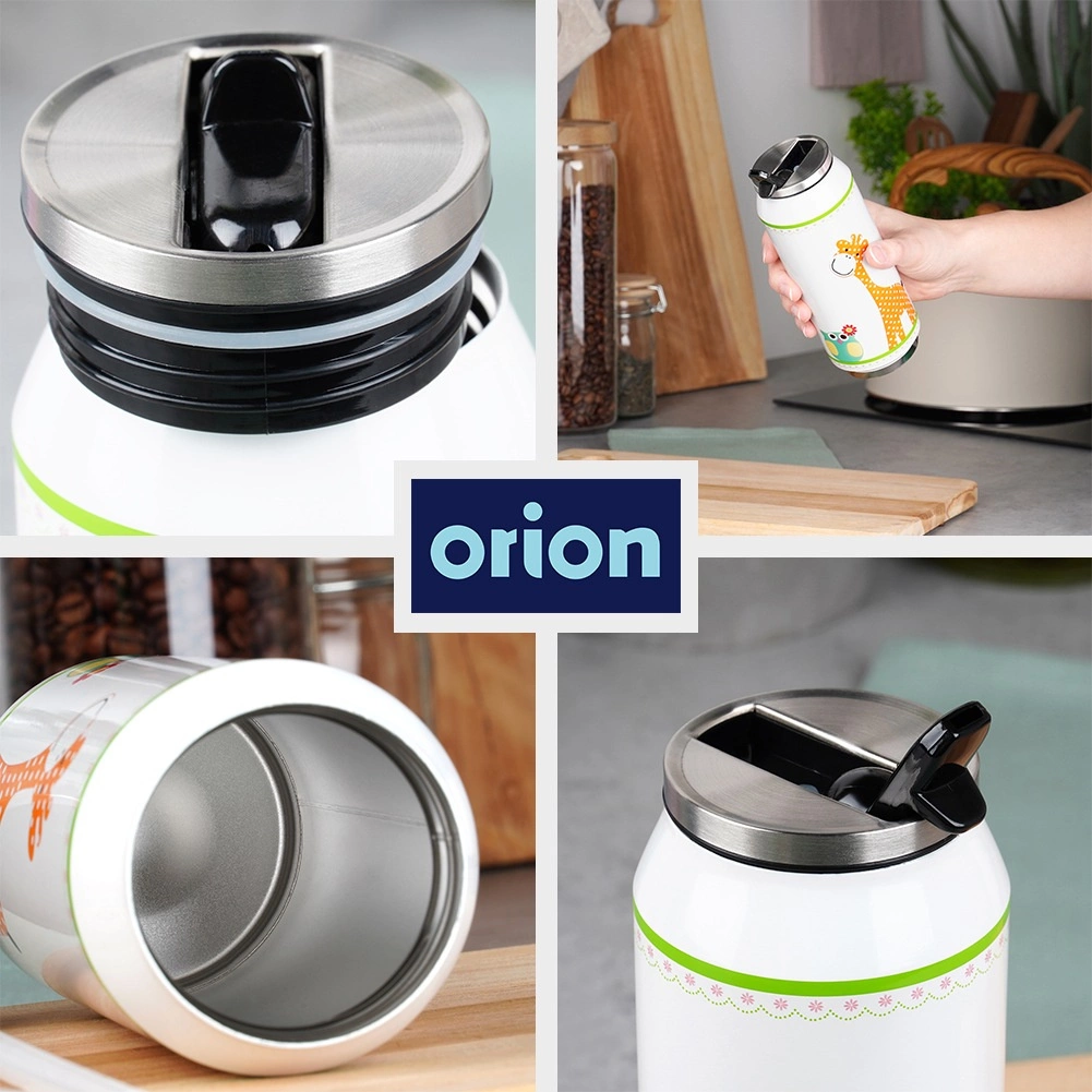 Práctico y de diseño atractivo, este termo vaso parece una lata, pero funciona como un termo fiable. Cuenta con doble pared con aislamiento al vacío y está hecho completamente de acero inoxidable de alta calidad, por dentro y por fuera. Gracias a ello, conserva muy bien la temperatura y es resistente para el uso diario.