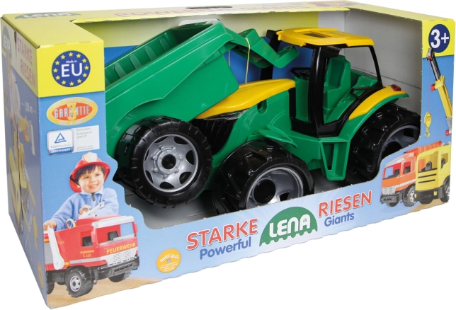 El tractor está hecho de plástico de alta calidad que resiste el uso diario y las inclemencias del tiempo. El remolque permite transportar objetos pequeños, lo que desarrolla la imaginación y la motricidad de los niños. Gracias a su alta capacidad de carga, el juguete es estable y seguro.