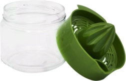 El vidrio resistente es estable, no absorbe olores y permite exprimir y servir en el mismo recipiente. Porción ideal para preparar rápidamente zumo fresco.