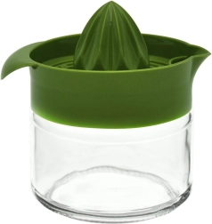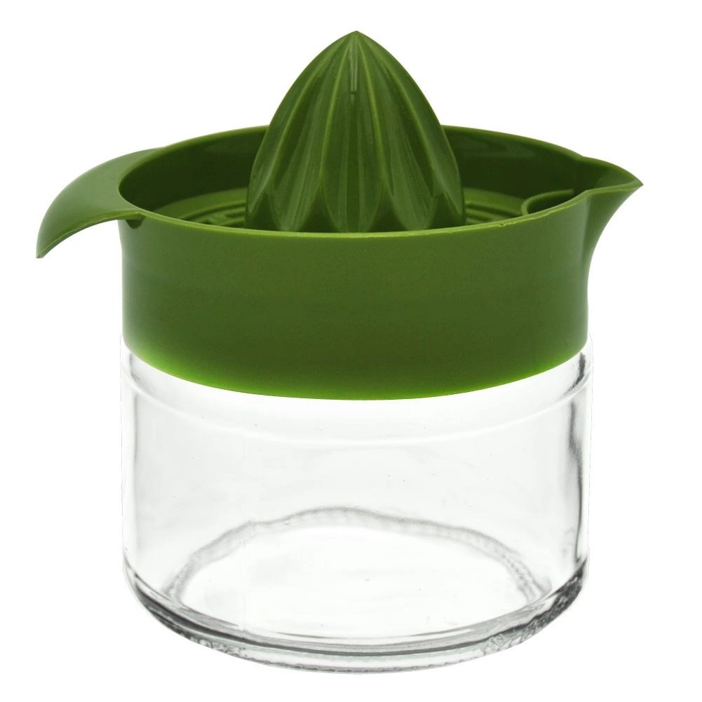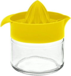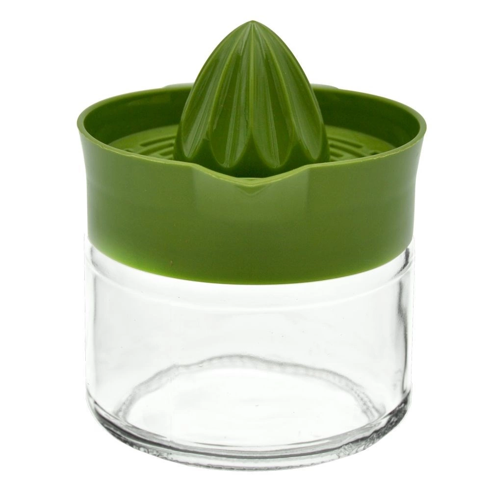 Práctico exprimidor manual de cítricos con recipiente de vidrio de 300 ml para exprimir fácilmente limones, naranjas o limas. Gracias al recipiente de vidrio resistente, el pico vertedor práctico y el asa lateral para verter cómodamente, prepararás zumo fresco en un instante. Apto para lavavajillas e ideal para limonadas caseras y uso diario.