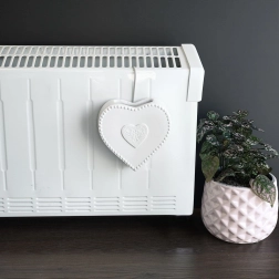 - Motivo decorativo de corazón: aporta calidez al interior y da un toque al radiador.