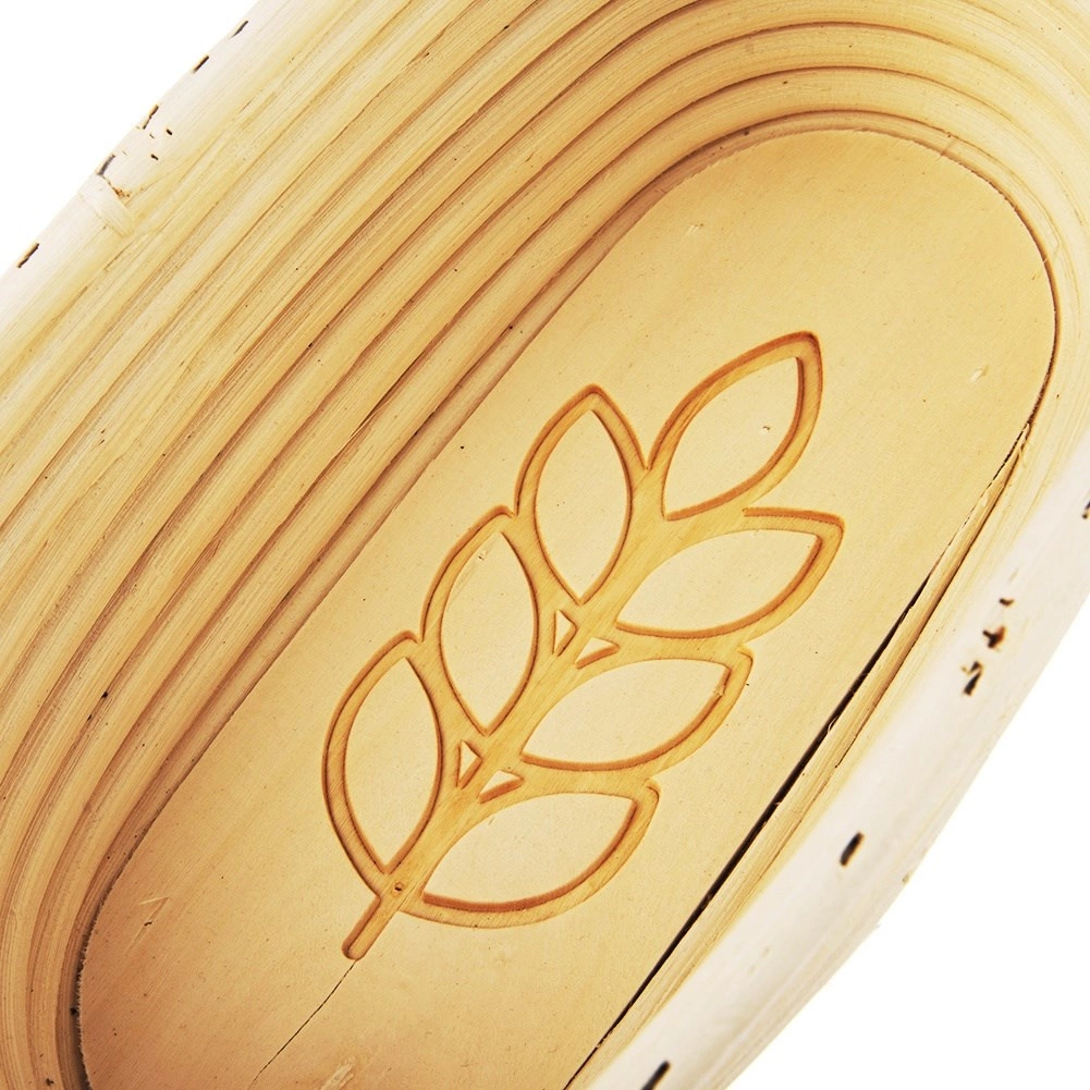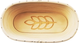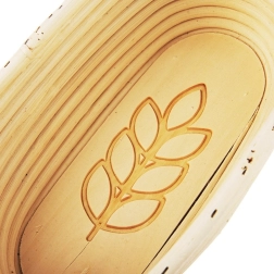 Práctico banetón ovalado de ratán natural, ideal para la fermentación de masa de pan de aproximadamente 1 kg (aprox. 500 g de harina). La estructura interior acanalada y el motivo de espiga en el fondo crean en la hogaza un impreso decorativo, mientras que las paredes más altas sostienen la masa de forma fiable para que no se desparrame al volcarla en la bandeja.