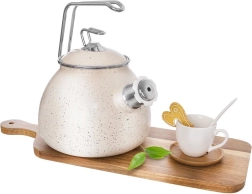 Asa cómoda para un agarre firme; los platillos de bambú protegen la mesa del calor y atrapan las gotas.