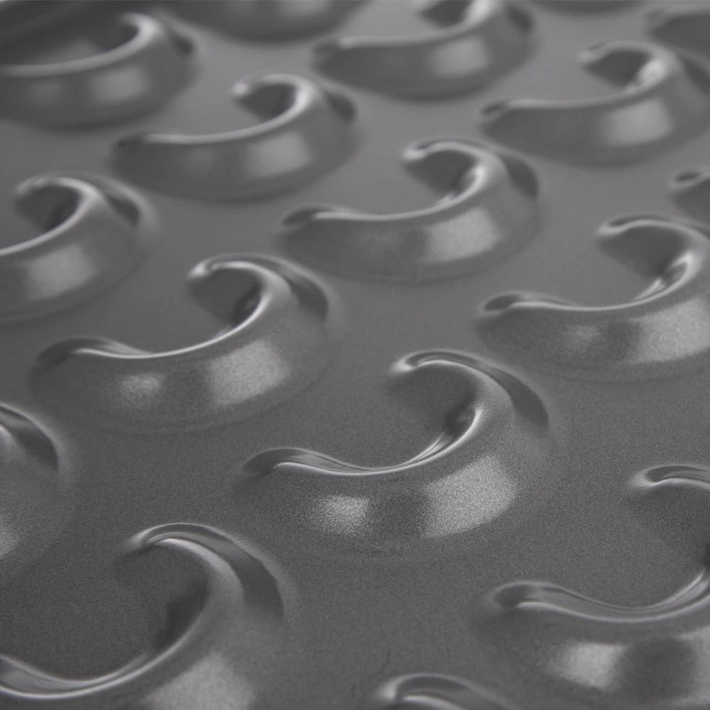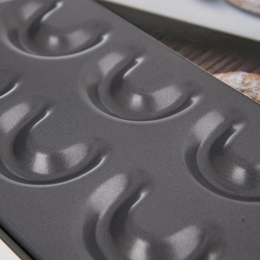 Gracias a la densa disposición de cavidades, hornearás una gran cantidad de cuernitos a la vez y obtendrás un tamaño y una forma uniformes.