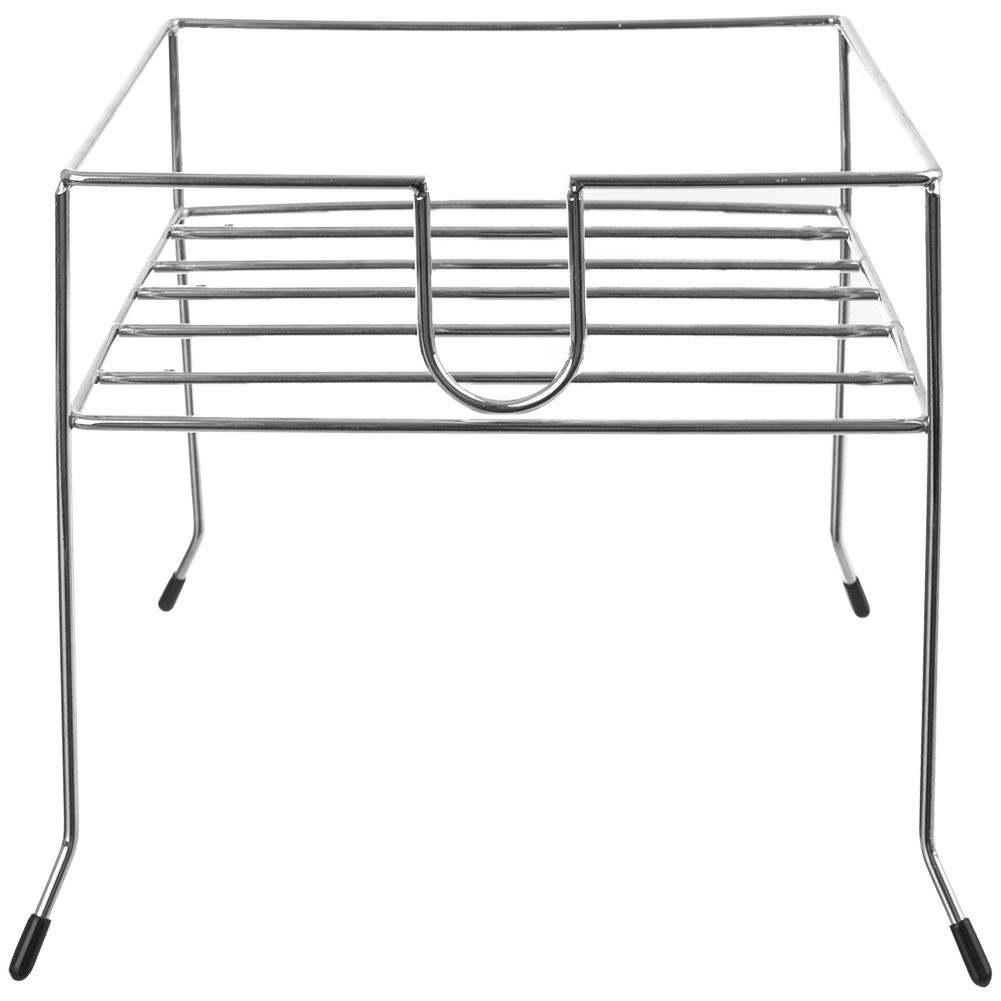 Soporte metálico universal de acero cromado que eleva el dispensador de bebidas a la altura ideal para un vertido fácil. La medida interior de 20,5 × 20,5 cm garantiza compatibilidad con la mayoría de dispensadores de 3–8 l, incluidos modelos de la marca ORION. Gracias a su diseño abierto de varillas, el soporte es ligero, muy estable y aireado.