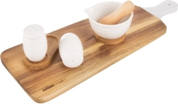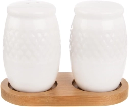 Este juego de 3 piezas WHITELINE combina diseño limpio y practicidad. Dos especieros de porcelana blanca con un elegante relieve en relieve se asientan sobre una base de bambú de alta calidad que mantiene el orden tanto en la encimera como en la mesa. Gracias a los discretos orificios dosificadores, podrás verter la cantidad exacta de sal y pimienta al cocinar y al servir.