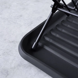La bandeja de plástico acanalada recoge el agua de forma fiable y puede extraerse y vaciarse fácilmente. Mantiene la encimera limpia y sin marcas.