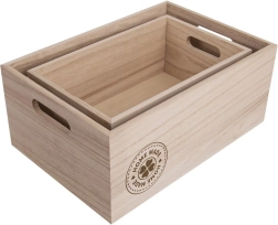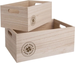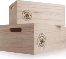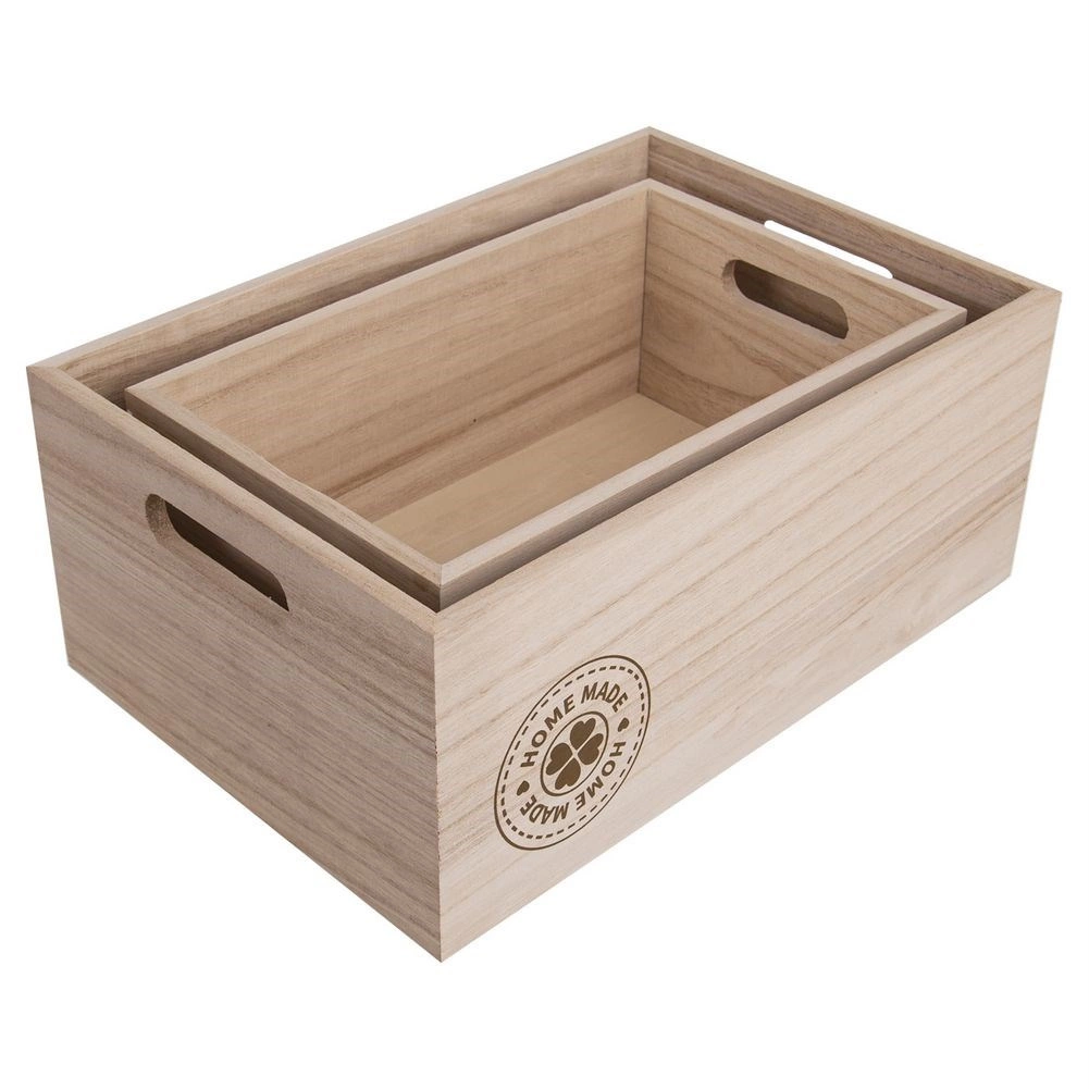 Práctica caja de madera para guardar de forma ordenada pequeños objetos, cosméticos, alimentos o material de oficina. Mide 31 × 21 × 13 cm, tiene una construcción sólida y asas laterales para un transporte sencillo. Es perfecta para la cocina, el salón y la oficina, y también funciona como una decoración con estilo. Madera natural, uso multifuncional, asas laterales, acabado resistente.