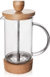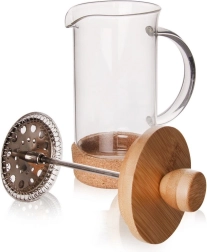 Esta estilosa prensa francesa combina vidrio de borosilicato transparente con elementos naturales: tapa de bambú y base de corcho. El émbolo con malla de acero inoxidable separa de forma fiable los posos de café o las hojas de té, para que disfrutes de una bebida limpia y aromática en pocos minutos. Gracias al asa ergonómica de vidrio y al pico preciso, el vertido es cómodo y sin goteos.