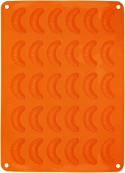 Este molde de silicona naranja Sillinie es ideal para preparar fácilmente galletas, chocolatitos y pralines con forma de cuernito. Gracias a la superficie antiadherente, la masa no se pega y las piezas terminadas se desmoldan con facilidad sin necesidad de engrasar ni enharinar.