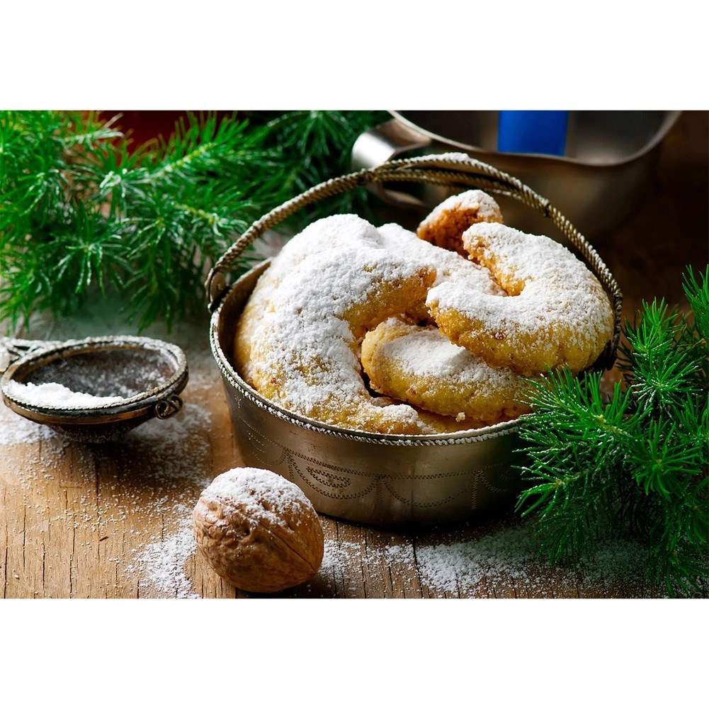 Los cuernitos se rebozan fácilmente en azúcar glas y se consigue un aspecto uniforme y decorativo para una presentación festiva.