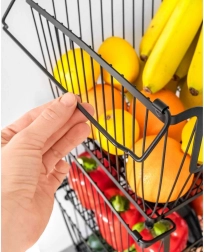 El recorte frontal y las paredes de alambre garantizan una extracción sencilla de los alimentos y una mejor ventilación, lo que ayuda a mantener frutas y verduras frescas por más tiempo.