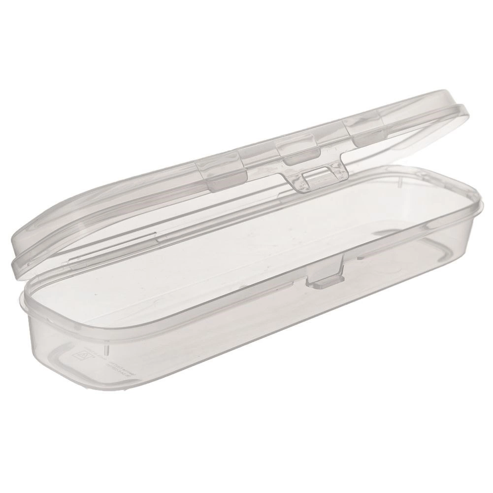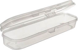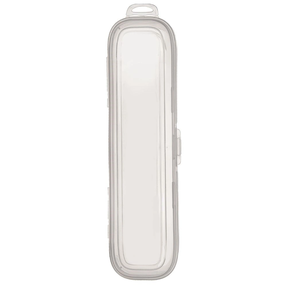 Funda transparente práctica para guardar y transportar de forma segura cepillos de dientes, gafas, cubiertos o cosméticos. Fabricada en plástico resistente, con cierre a presión fiable y ojal para colgar, la convierten en el compañero ideal para viajes y para la escuela. Dimensiones 25 × 6 × 4 cm.