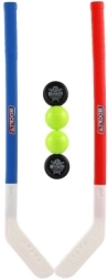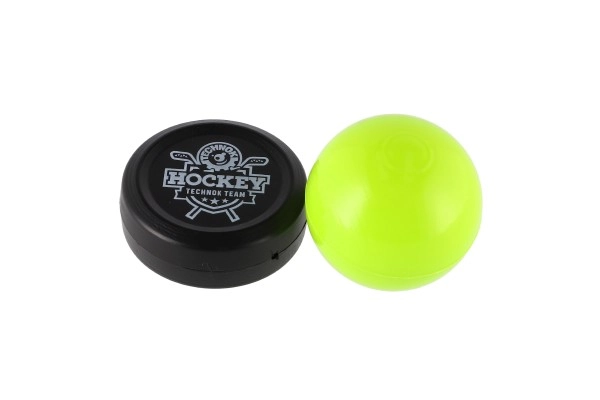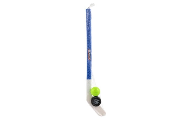 El paquete incluye un palo de hockey de plástico, un disco y una pelota para una experiencia de hockey completa.
