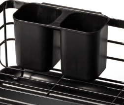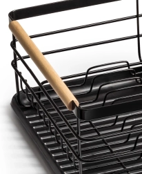 Elegante y funcional, este escurridor ayuda a mantener la cocina limpia y organizada. El acabado metálico negro con asas de bambú natural combina resistencia con un aspecto moderno. La bandeja de goteo extraíble recoge el agua de forma fiable y facilita la limpieza, mientras que el cesto para cubiertos de dos compartimentos puede colocarse dentro o fuera según se necesite.