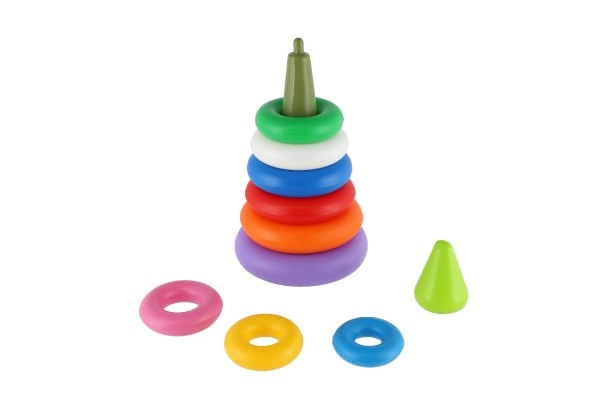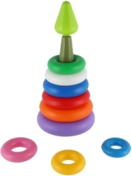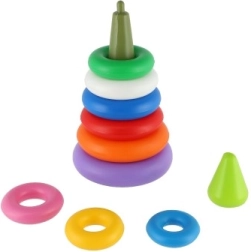 Cada anillo tiene un color diferente, lo que ayuda al reconocimiento de colores y a la diferenciación por tamaños. Los niños se verán fascinados por los colores vivos y disfrutarán apilando y desmontando la pirámide una y otra vez.