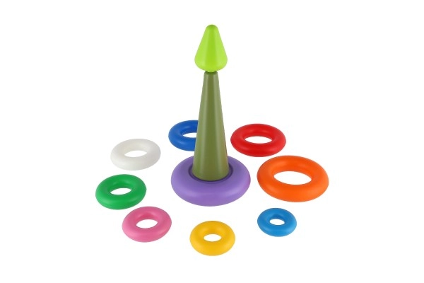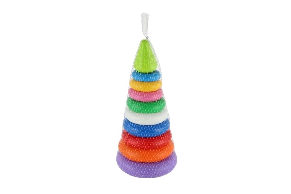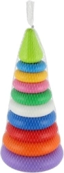 Nuestra pirámide apilable multicolor está compuesta por ocho anillos de plástico de distintos colores que se apilan fácilmente formando una pirámide. Este juguete didáctico está diseñado para estimular la percepción visual y las habilidades motoras de los niños desde una edad temprana.