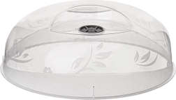 Práctica tapa transparente para microondas de 29 cm de diámetro y 11 cm de altura que protege de forma fiable contra salpicaduras y el resecado de los alimentos. Dispone de válvula de vapor con cierre para regular la humedad, asa cómoda para retirarla fácilmente y está fabricada con material resistente sin BPA. La tapa es apta para lavavajillas y resiste temperaturas de hasta +95 °C.