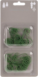 Disfruta de una decoración del árbol sin complicaciones con este set de ganchos universales en color verde. Gracias a su longitud de 4,5 cm, podrás colgar fácilmente la mayoría de bolas navideñas y pequeñas decoraciones, mientras su color se funde discretamente con las ramas y permite que resalten los propios adornos.
