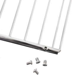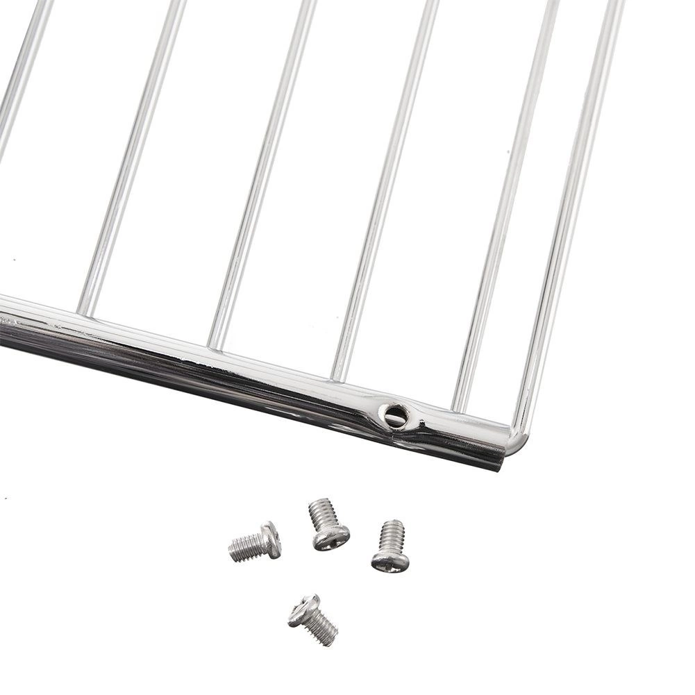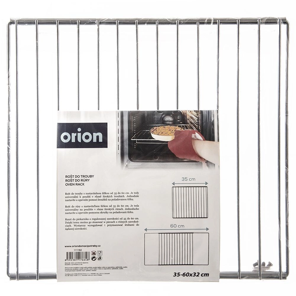 Práctica rejilla para horno de acero cromado de alta calidad que se adapta fácilmente al ancho de tu horno. La longitud se ajusta de 35 a 60 cm y se asegura con los tornillos incluidos. Su diseño de rejilla abierta favorece la circulación uniforme del aire caliente, logrando carnes y panes bien horneados y crujientes.