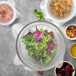 Las tapas se enjuagan fácilmente o se introducen en el lavavajillas. Con su uso repetido ahorras dinero y cuidas el medio ambiente.